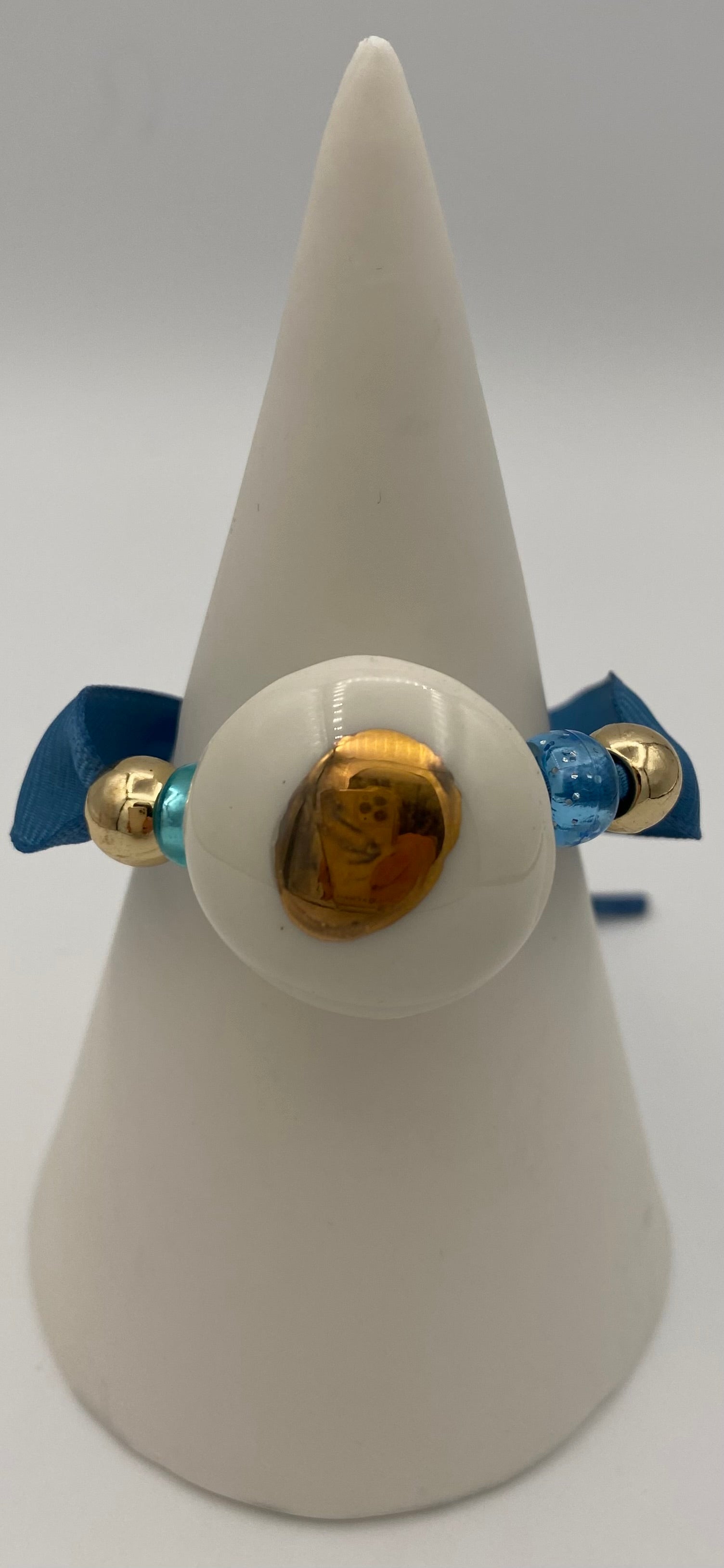 Armbandje past voor iedereen! Wit porselein, gedecoreerd met metallic goud, en kraaltjes, perfect bij je jeans!