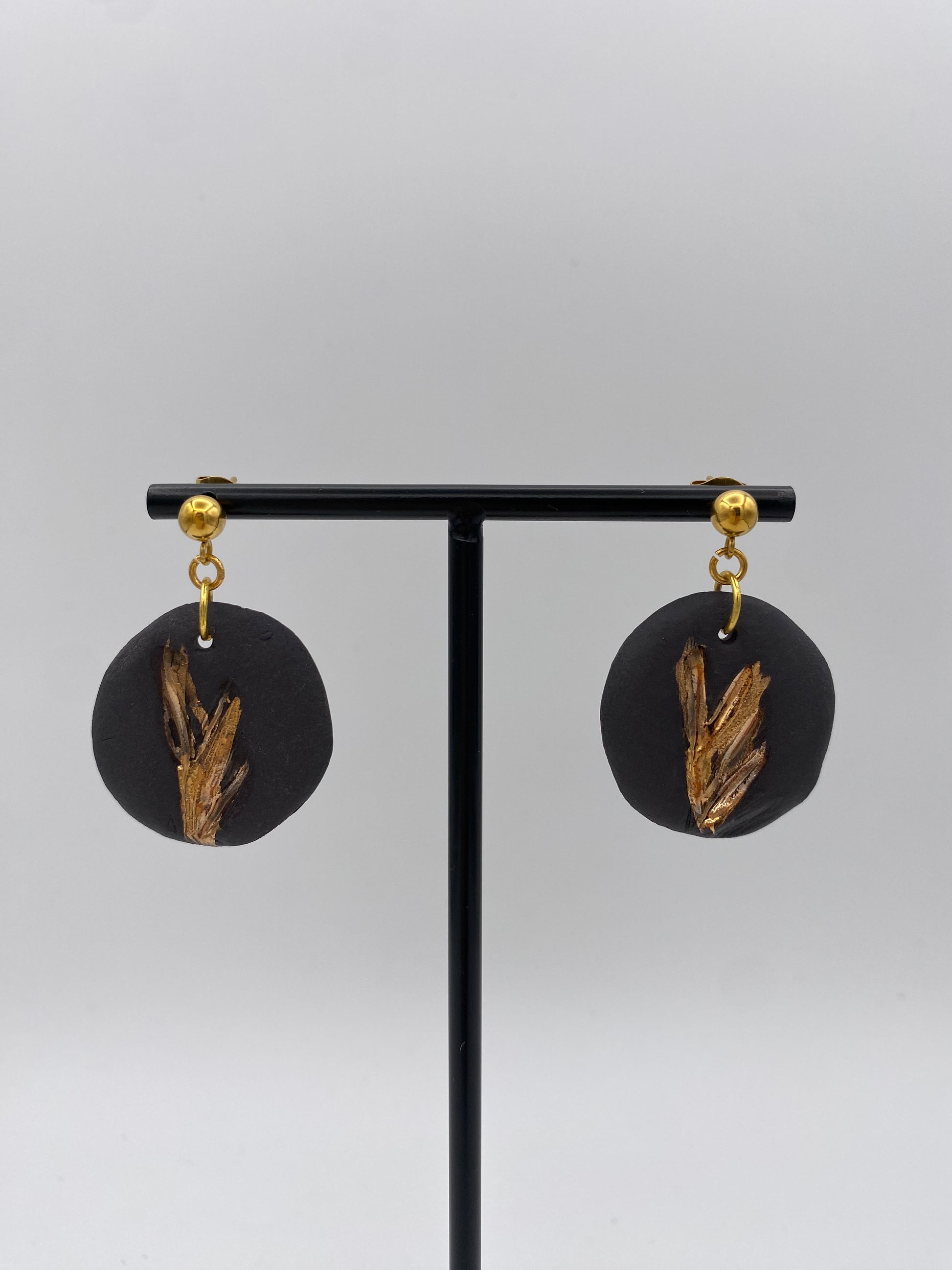 goudkleurige stekertjes, zwarte porseleinen rondjes met gouden decoratie, totale lengte 4 cm